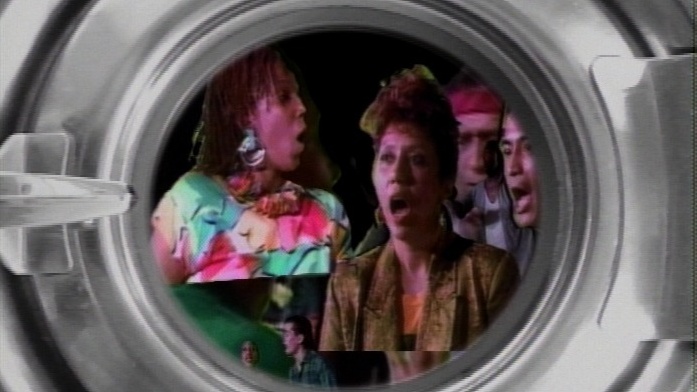 An upbeat, ironic look at America’s multicultural society, Color Schemes uses the metaphor of “color wash” to tackle conceptions of racial assimilation. Challenging stereotypes, twelve writer/performers collaborate on four performance sequences—soak, wash, rinse and extract. Spinning through this tumble- jumble of America's washload, the performers scheme to claim racial images that remain color vivid. Color Schemes was also exhibited in its installation form (with a self-service washing machine) at the Whitney Museum in 1990.