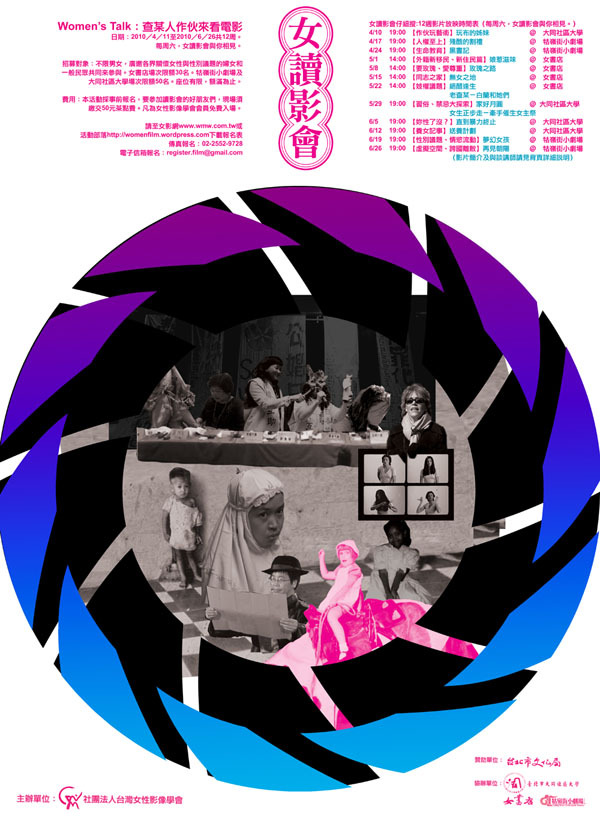 自2010/4/10到2010/6/26共12周,每周六女讀影會與你相見。