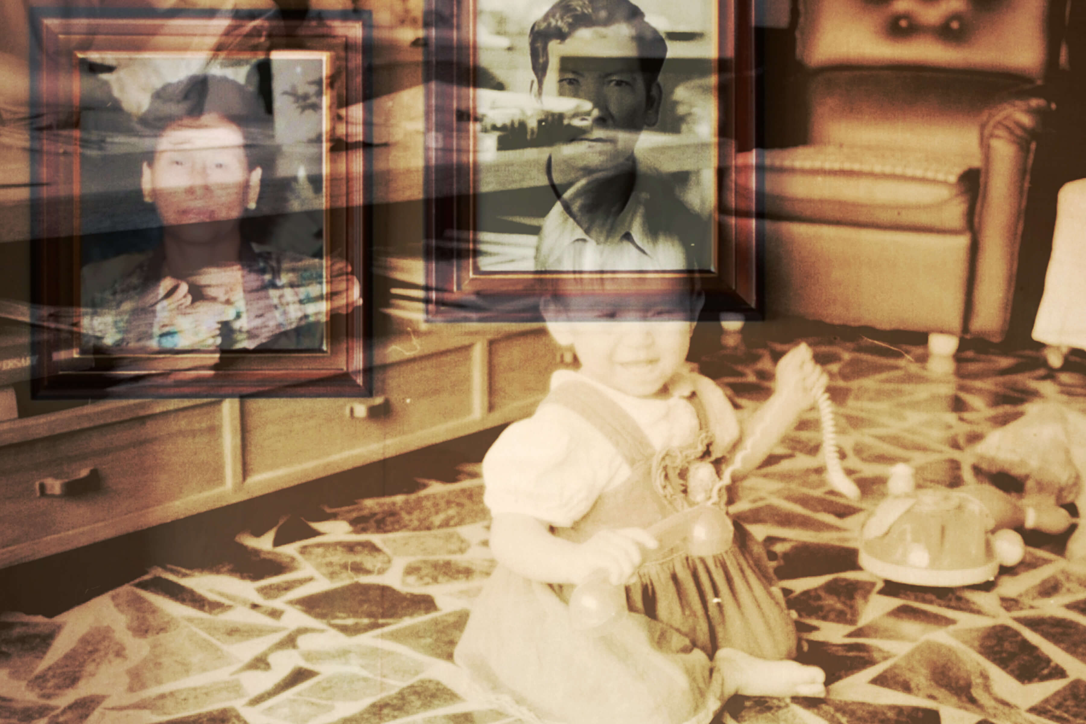 導演將兒時母親拍攝的影片和照片,解構成為新的影像,用反覆出現、加強雜音與雜訊、聲音設計等形式,把原先快樂的畫面變得不自然,甚至有點駭人。「我好害怕,」導演的對白說道,此時搭配的影像,卻是兒時和爸爸玩耍的幸福時分,於是沉痛就這麼蔓出來了,如幽靈般縈繞在腦海。